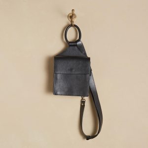 A striking ring handle draws attention to this sleek little bag. which includes a magnetic closure. zip pocket and a removable crossbody strap that can attach to either side. Leather. Italy. Exclusive. Approx. 9w x 3d x 12h.