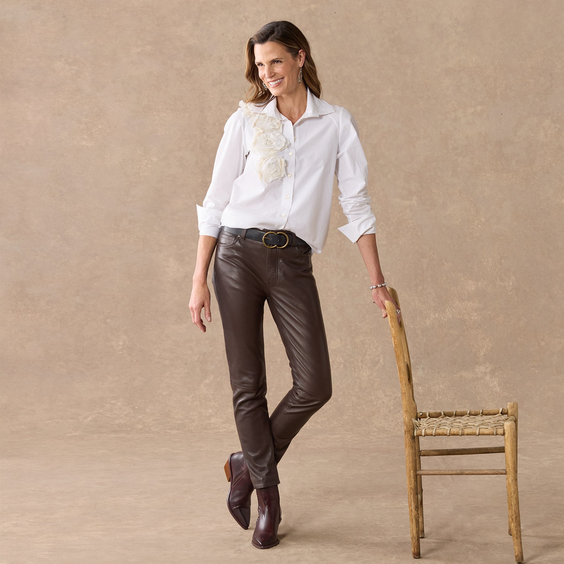 An enduring classic with fresh. au courant touches. this Victorian-inspired. button-up blouse features asymmetric cuffs. structured collar. unfinished hem. and a lovely trail of mixed media floral applique at the front. Cotton. Dry clean. Imported. Exclusive. Sizes XS (0?C2). S (4?C6). M (8?C10). L (12?C14). XL (16?C18). XXL (20?C22). Approx. 27.75l.